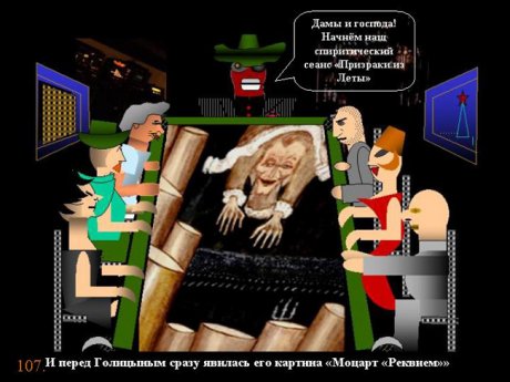 Тем самым летом, некоторые москвичи получили по почте ВИЗИТКИ-ПРИГЛАШЕНИЯ: "Спиритический сеанс ПРИЗРАКИ ИЗ ЛЕТЫ. Нервных просим удалиться. Международный мастер спиритизма проф. ВОЛАНД".