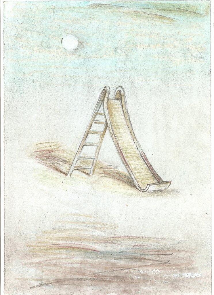 -Детская горка- Одиночество.- А4. Карандаши и акварель.