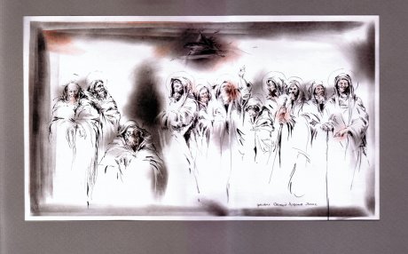 бумага, тушь, перо, соус, сангина
