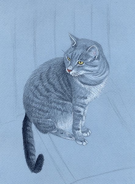 Замечательная работа!Котик,как живой!Я представляю,сколько труда стоило такое нарисовать!С уважением,Светлана