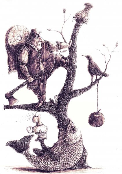 У Вас рыбная тема доминирует. Вы не рыбак случайно? Рисунок очень понравился, буду искать Ваши работы ещё!