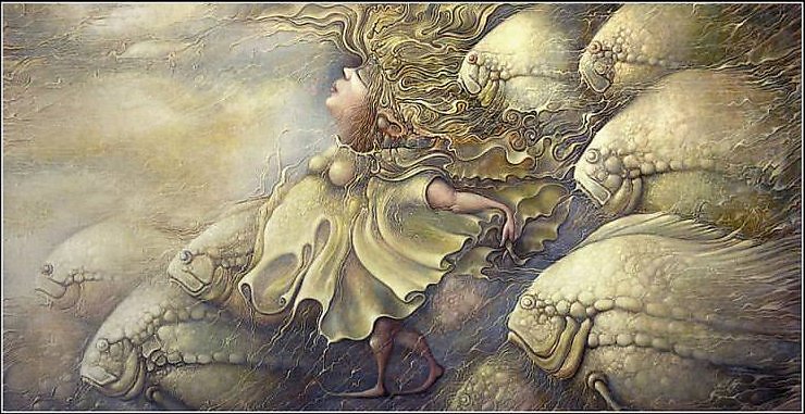 "По течению" холст,масло 70х130