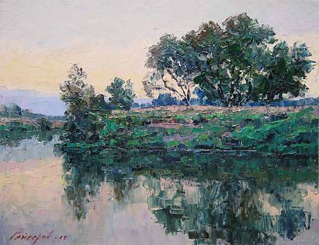 какая красота. лето солнце! речка или озерцо. а название картины это место где это всё находиться или название жтой речушки. и вода отражается. прекрасно!