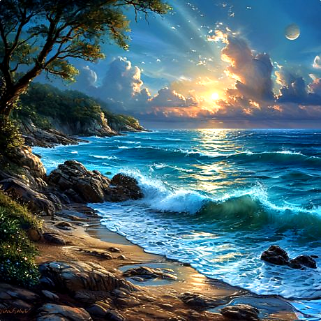 Изобразительное искусство / НЕЙРОСЕТЬ (изображения, сгенерированные нейросетью) / Море зовёт, волна 🌊 поёт