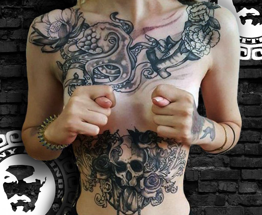 Череп на теле девушки смотрится весьма оригинально))))