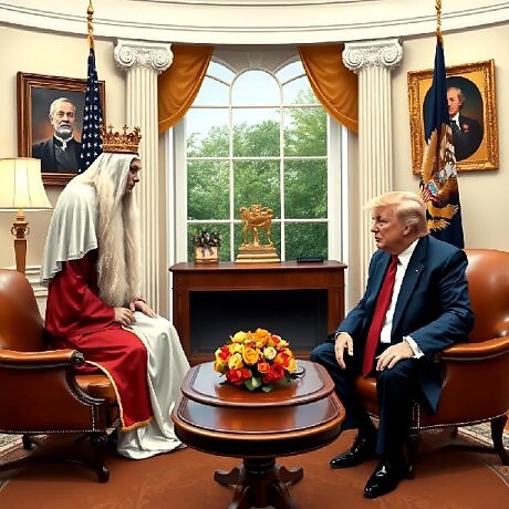 Или же, как вариант, Бог мог ответить с легкой иронией, намекнув на то, что роль "Президента всего Мира" уже занята, и не кем иным, как Им самим. Такая ответная шутка, понятная лишь Трампу, могла бы поставить его на место, не унижая, но напоминая о субординации.