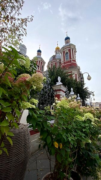 Церковь Священномученика Климента Папы Римского в Москве, украшенная цветущими Гортензиями.