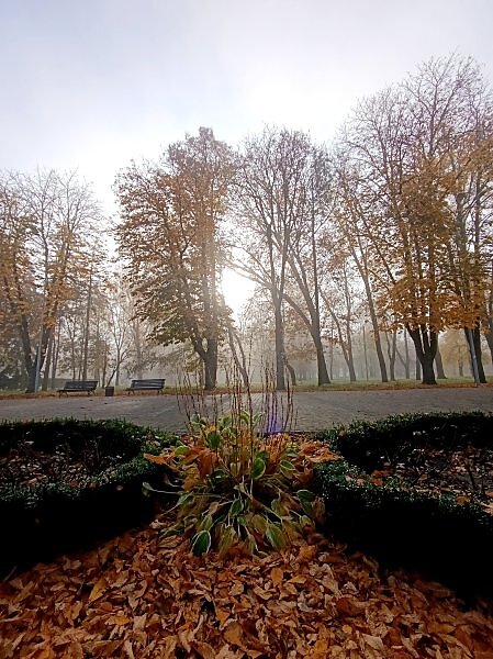 Туманно в осеннем парке