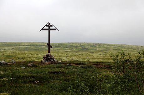 Я не подходил, но уверен, что - то типа оберега местности, если можно так сказать. Сейчас частенько ставят подобное на въезде в населённые пункты. Здесь же до ближайшего посёлка на берегу Баренцева моря около 40 км, так что однозначно не могилка.