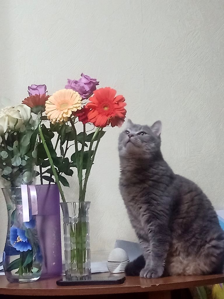 И правда! Так любоваться цветами может только кошечка)). Тогда и духи к месту).