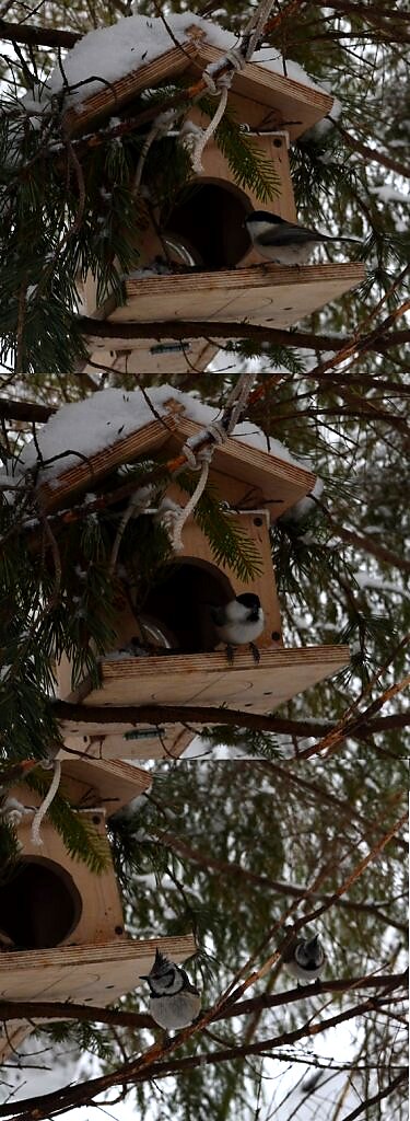 снято в позапрошлую зиму, позируют синицы: серые без хохолка и с хохолком