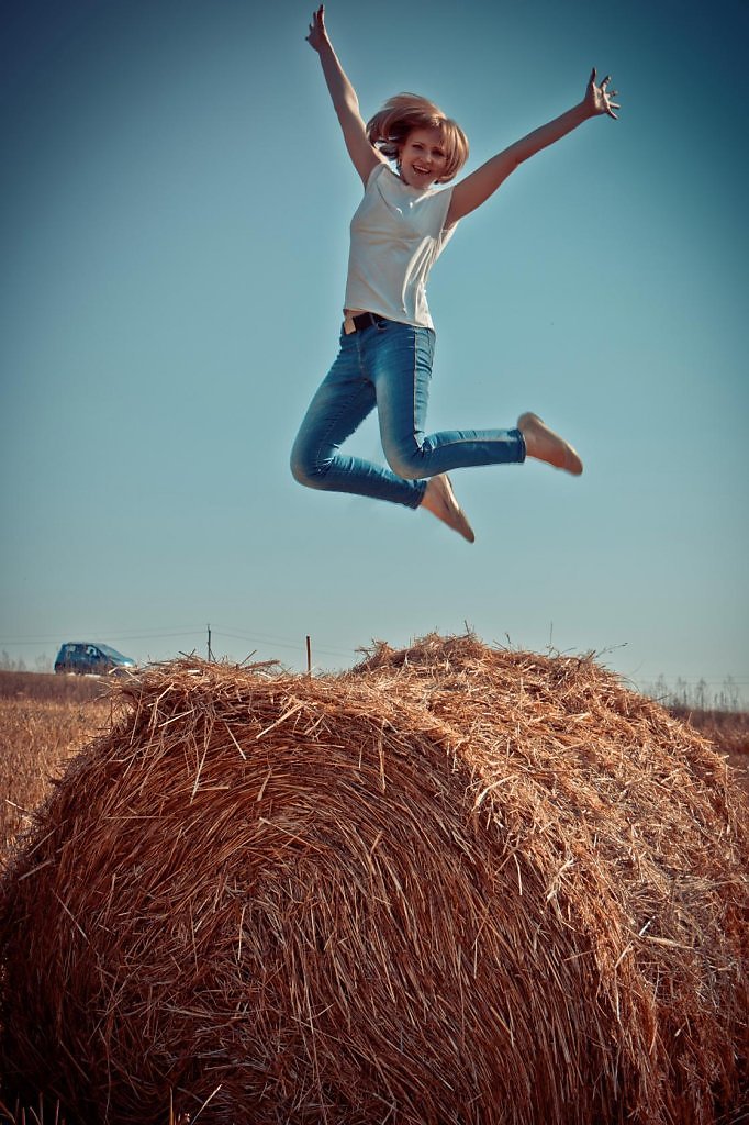 Открытый, зовущий в небо и в объятья прыжок, Наталья!!! И прямо над свежескошенным и упакованным стожком и может даже ржи хоть и не с пропастью, но зерновых культур точно! А на сене наверное не так колко как на соломке?)) Хотя ведь не зря говорят знал куда прыгнул(где упал) соломки бы постелил!))