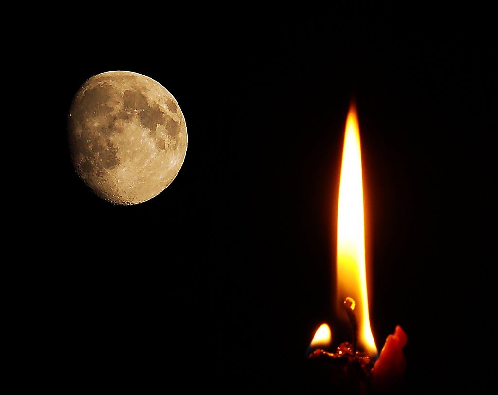 А разве коллаж можно? Луна и свеча сняты в разных режимах...