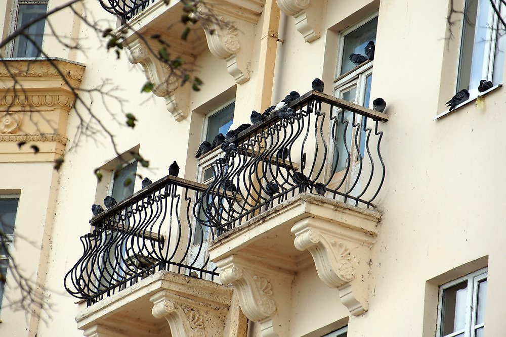 Это произведение искусств - поймали очень интересный сюжет. Красивые балконы и мирные птицы. Замечательно!