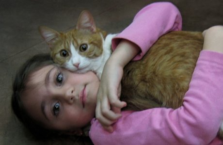 ОЧЕНЬ! Редкий кадр. Кошка явно во всем подражает своей маленькой хозяйке.