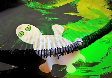 По-моему, это не шланг, а палка, обмотанная проволокой. И на ней прикреплён рисунок с черепахой.