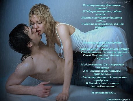 Есть только я... А остальное нам - не важно. Любовь - в сиянии огня... Душа, горящая от жажды... НАДЕНЬКА!КРАСИВО И НЕЖНО!!! |