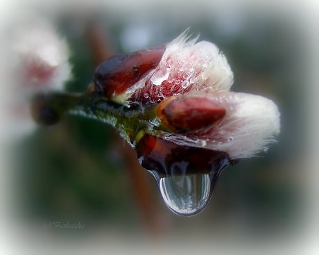 А утром, после этого дождя, тонкие ветви деревьев сгибаются под тяжестью ледяного панциря… И с нетерпением ждут первых лучей просыпающегося солнца… Лучи нежно гладят причудливо изогнувшиеся ветви… И прозрачный панцирь рассыпается, тает, серебристыми каплями замирает на пушистых кисточках вербы… Я вглядываюсь в эти капли… И мне кажется, весь мир спрятан там, за этой серебристой прозрачностью…