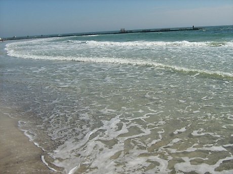 И пляж озябший.