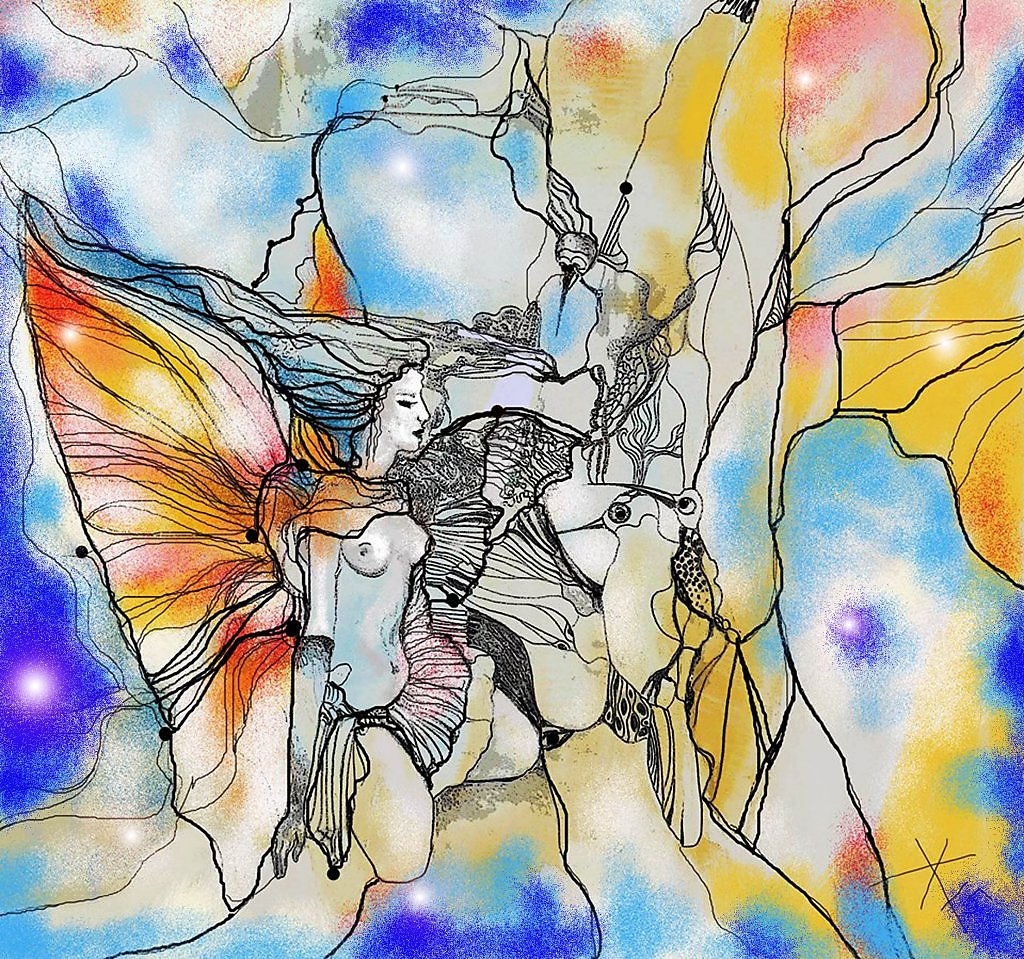 Слияние Художницы с пространством холста…Чистого холста , получающего от неё знаки …Знаки…Словно шифры …Словно Коды Доступа …Словно Волшебные Ключи к пониманию тайн …