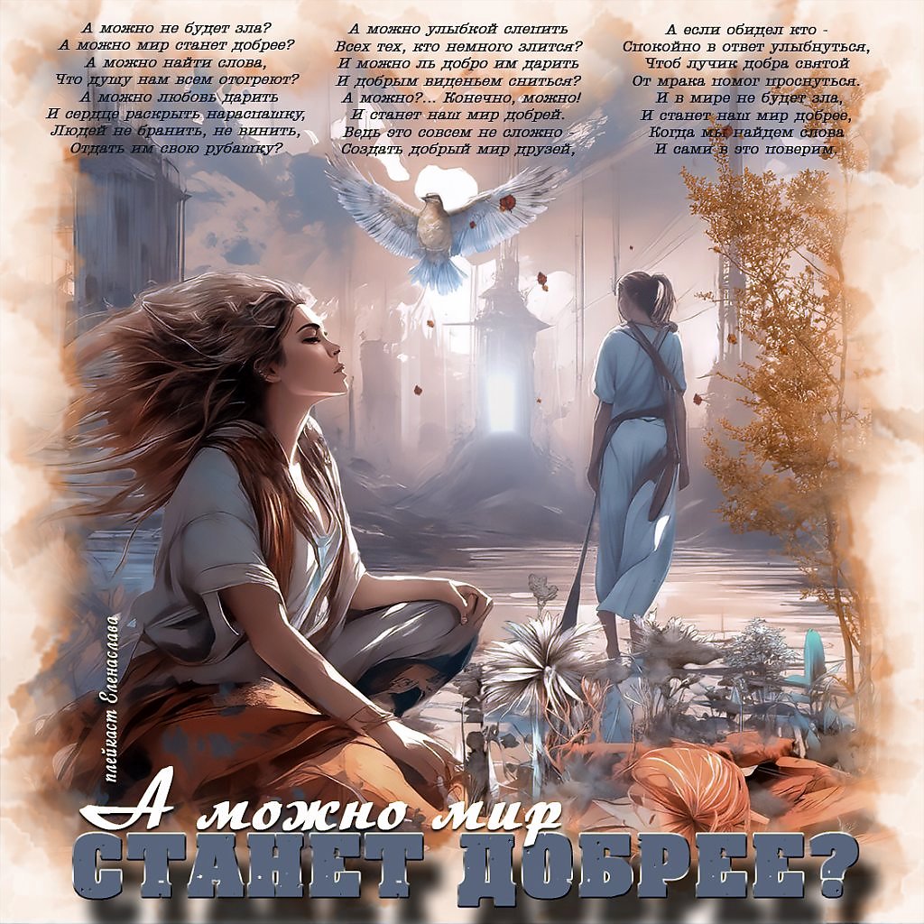Автор текста: ВЕРЬТЕ В ДОБРО И ЧУДО! (или А МОЖНО, МИР СТАНЕТ ДОБРЕЕ?) © Copyright: Ольга Фокина Усть-Илимск, 2016 Свидетельство о публикации №116040501357