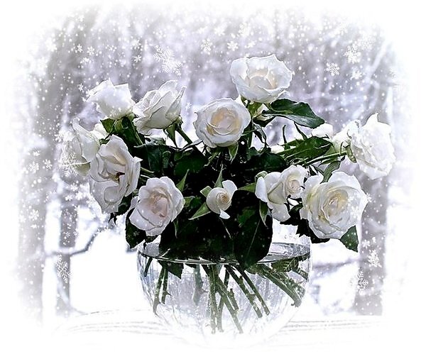 БУКЕТОМ РОЗ НА СНЕЖНОМ ПОЛОТНЕ.