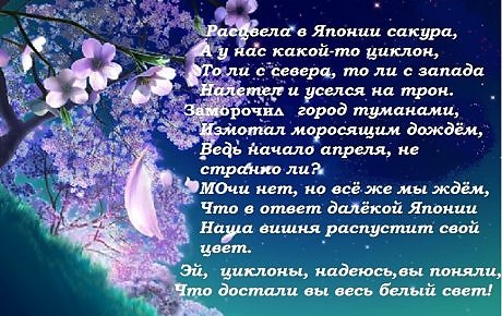 Стихотворение это старенькое, но я решила его сегодня показать в знак солидарности с теми из вас, друзья, кто ждёт весну, а она всё не идёт.