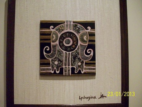 Стоимость:4000руб.,.Размеры: h=25см ,L=25см . Материал:глина , шамот глазури эмали,золото,медь,патина.Рама 50*50см