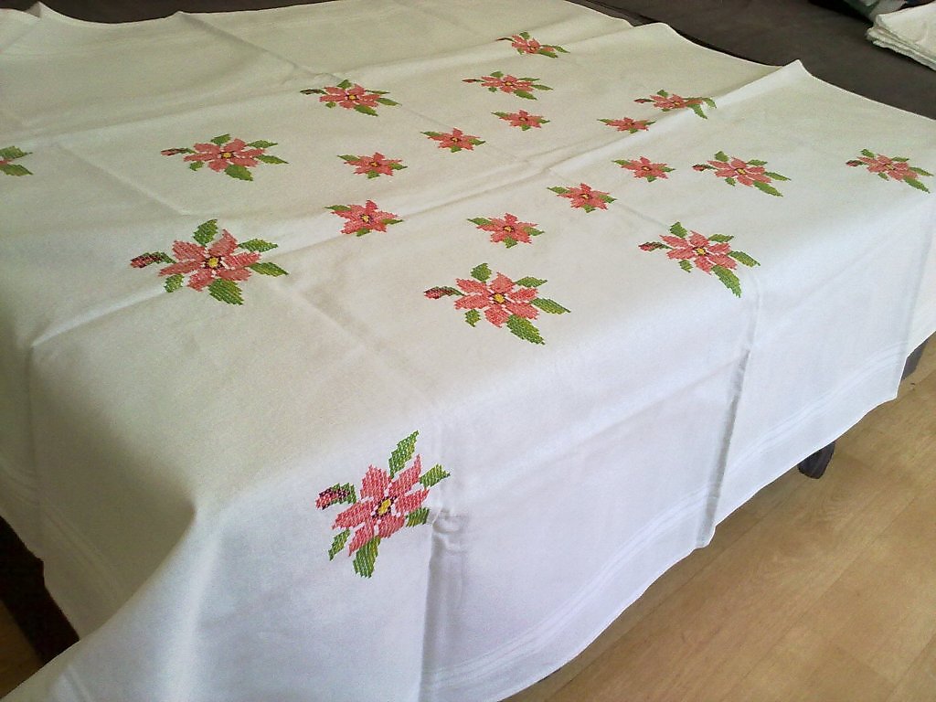 скатерть с красными цветами , вышитая вручную. ткань и нити хлопковые. размер 160х130. 50eur